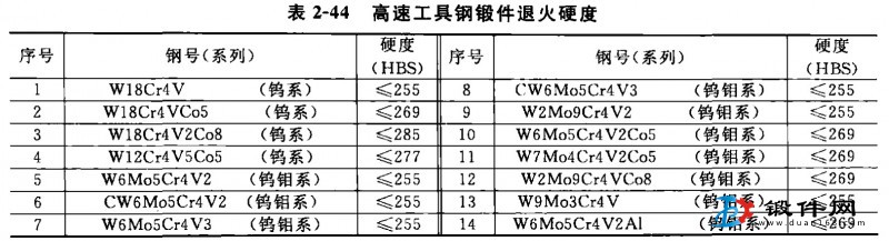 3、高度工具鋼鍛件應經退火處理,退火后硬度應符合表2-44規定。