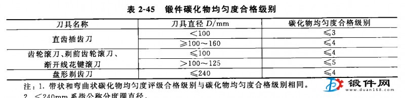 6、鍛件的碳化物均勻度合格級別應符合表2-45的規定。