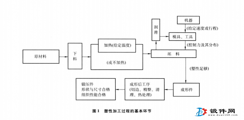 由圖1可見,任何一個鍛造過程的根本目的都是為了獲得符合圖樣要求的外形、尺寸及內部組織性能 合格的鍛件。而成形的基本條件有兩個,一是在變形 過程中材料能承受所需的變形量而不破壞,二是施力 條件,也就是設備通過模具向工件施加足夠大的及特 定分布的力。努力創造條件,優化工藝過程,生產合 格的鍛件是鍛壓工作者的重要任務。