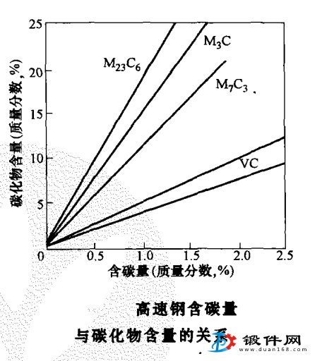 高速鋼中碳化物的類型隨含碳量不同而改變形態,與碳化物含量的關系。