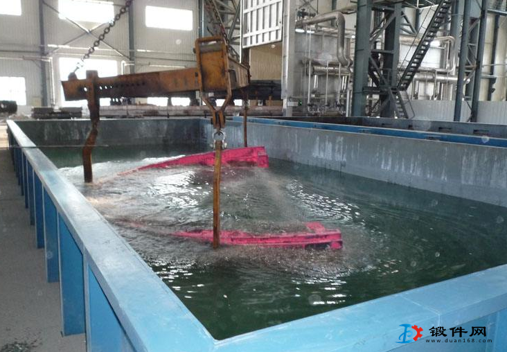 預冷淬火的關鍵是控制好預冷時間,預冷吋間短則效果差;時間長則有可能使鍛件淬火硬度降低(發生非馬氏體轉變)。由于鍛件的材料各異,形狀尺寸千差萬別,同時還受出爐溫度和壞境溫度的影響,故很難對預冷吋問進行準確的計算,主要靠操作者的技術和經驗來掌握。